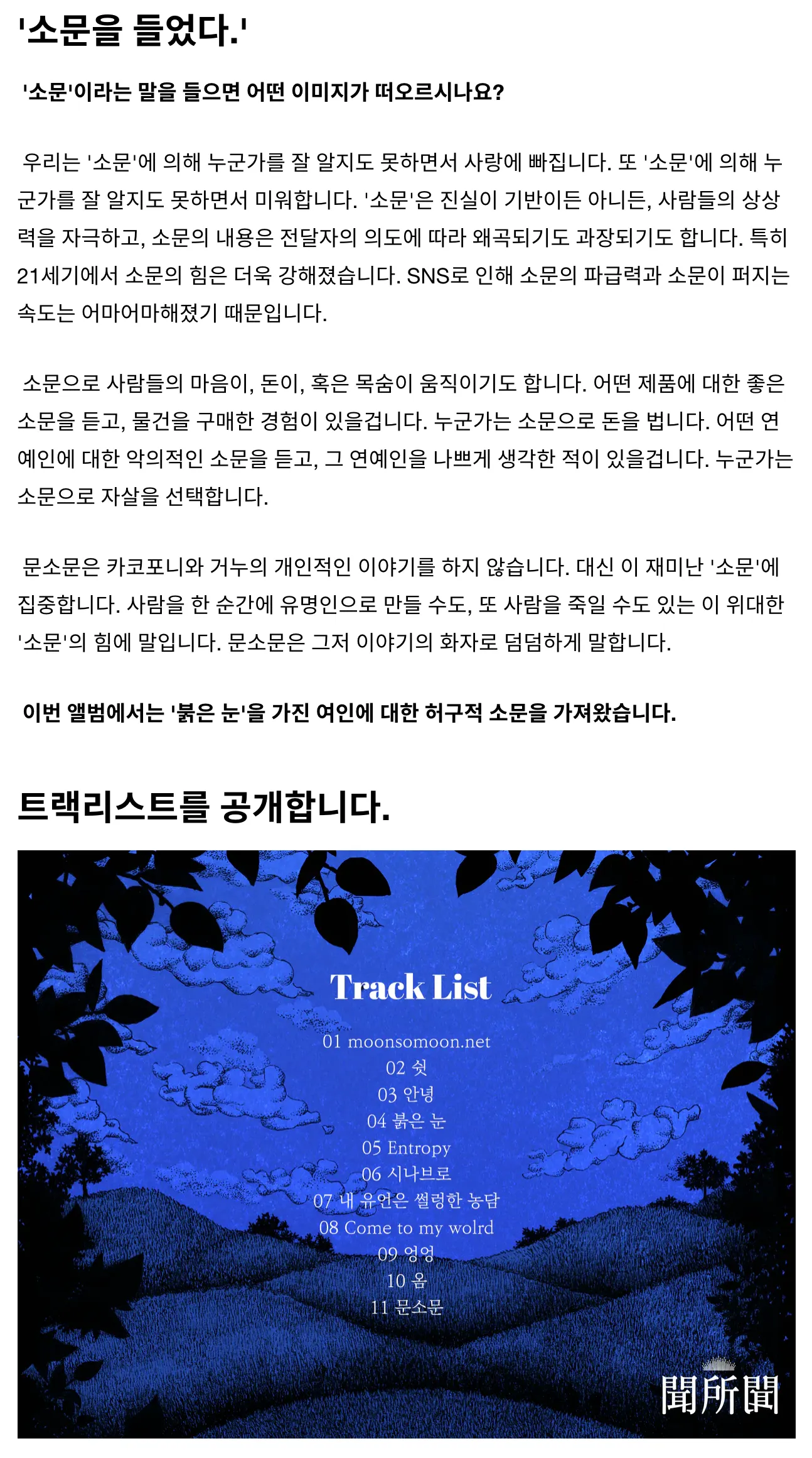 가장 기본적인 아티스트 소개부터 이 앨범 제작이 어떻게 시작되었는지 등의 기획 및 작업 과정은 물론, 특히 왜 펀딩을 통해 제작비를 마련하는지 명확히 제시한다면 설득력 있게 읽힐 수 있습니다. 어디서 영감을 받아 만들어진 노래인지, 이번 앨범을 통해 어떤 이야기를 들려주고 싶은지, 상세한 트랙 리스트 소개나 일부 들려줄 수 있는 데모 음원이나 프리뷰 영상이 있으면 더욱더 좋습니다.