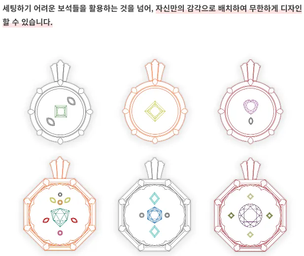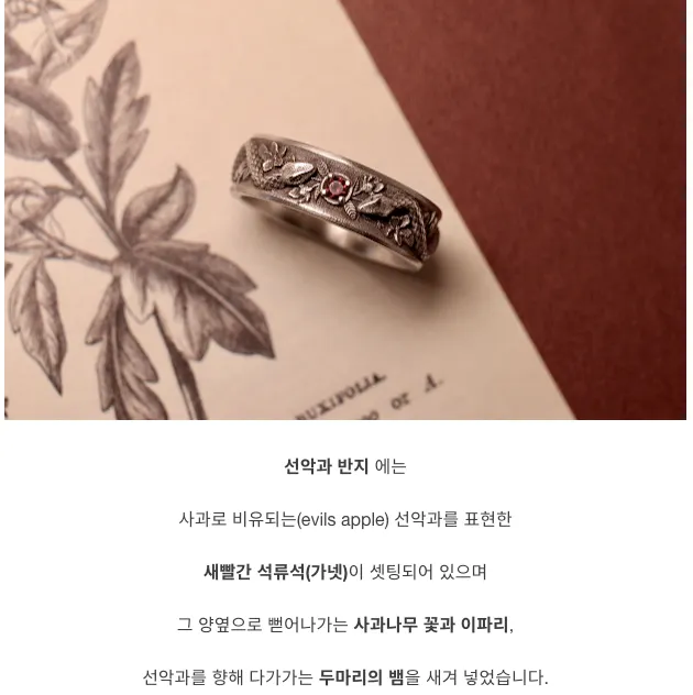 모티브를 먼저 설명하면, 자연스럽게 그 모티브의 유래와 의미를 담아 만든 주얼리라는 점을 어필하며 자연스럽게 제품 설명으로 넘어가실 수 있습니다.
