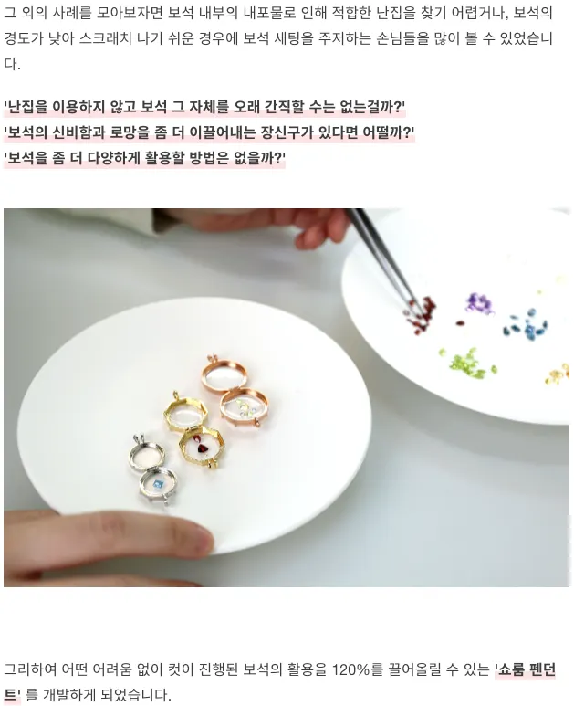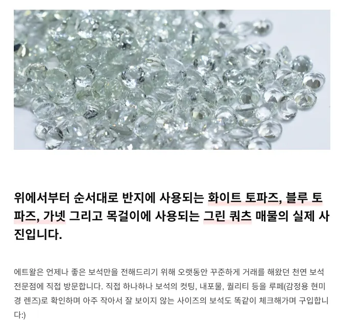 실제 제작에 사용되는 원석을 직접 사진으로 보여주시거나, 이전에 작업했던 동일 소재의 제품 후기를 활용해 보세요. 감정서가 있다면 이를 상세페이지를 통해 보여주셔도 좋습니다.
