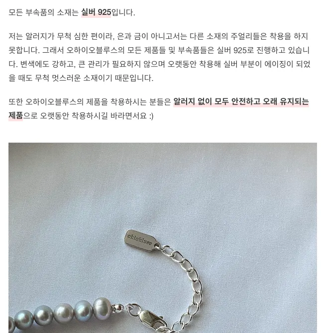 소재에 대한 정보는 주얼리의 퀄리티를 신뢰하도록 만드는 중요한 요소이고, 몸에 직접 착용하는 제품인 만큼 알러지 여부를 파악할 수 있는 정보가 되기도 합니다. 그만큼 소재에 대한 정확한 정보를 상세하게 설명해주셔야 내 제품의 가치를 제대로 전달할 수 있습니다.