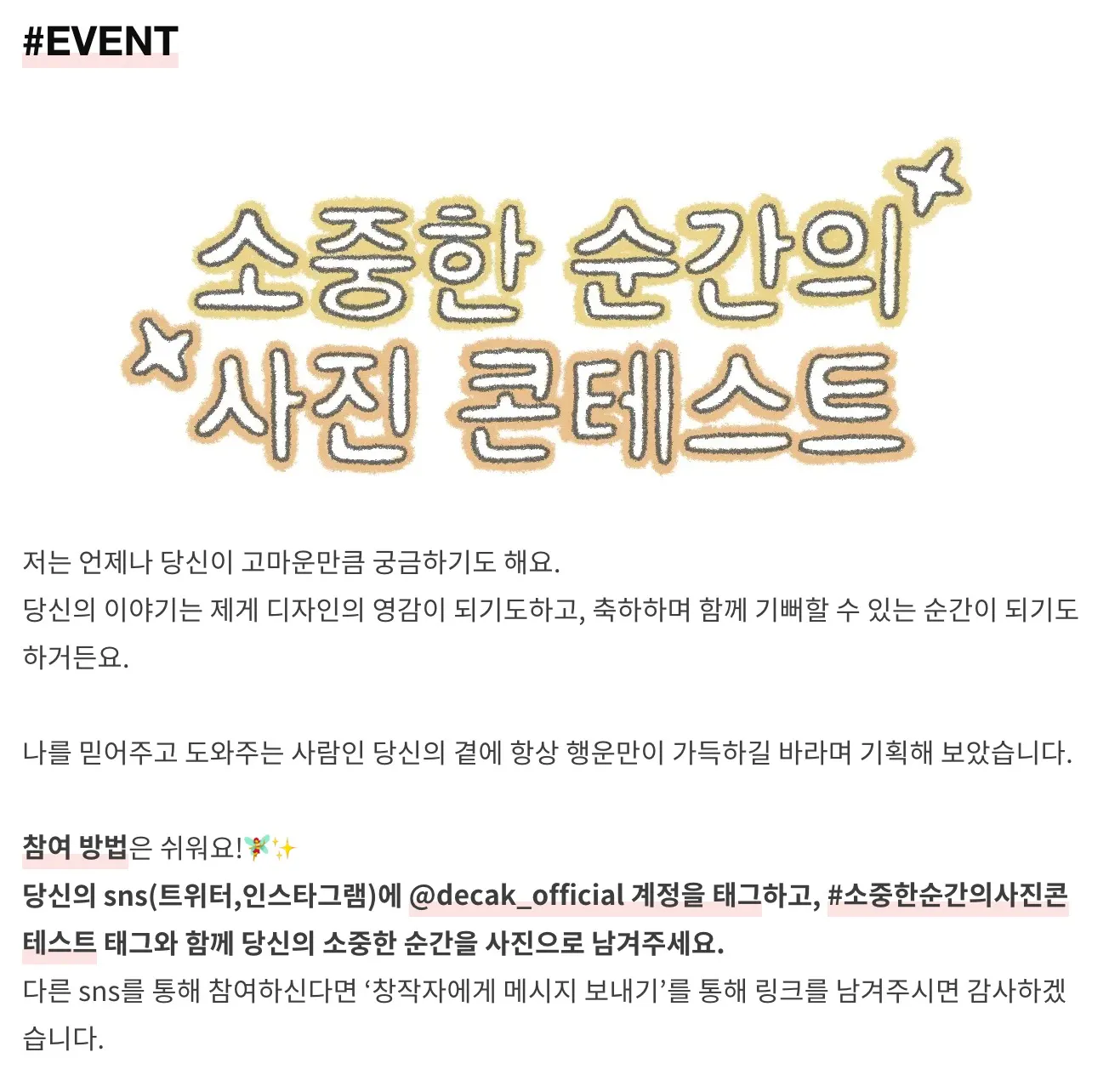 프로젝트의 연장선으로 진행하는 데칵의 SNS 이벤트