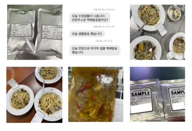 개발팀장님과 영업부장님을 끊임없이 괴롭힌(?) 결과, 샘플 테스트를 진행할 수 있었습니다. 샘플을 먹고 또 먹으며 하나의 맛이 최고의 맛이 될 수 있도록 여러 번 수정에 수정을 거친 결과, 자체 레시피와 공장 생산을 구분할 수 없을 정도로 똑같은 샘플이 나올 수 있었습니다.