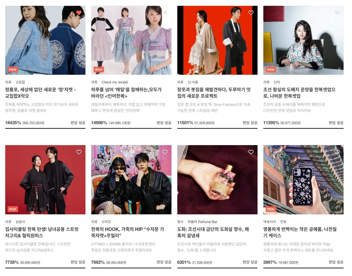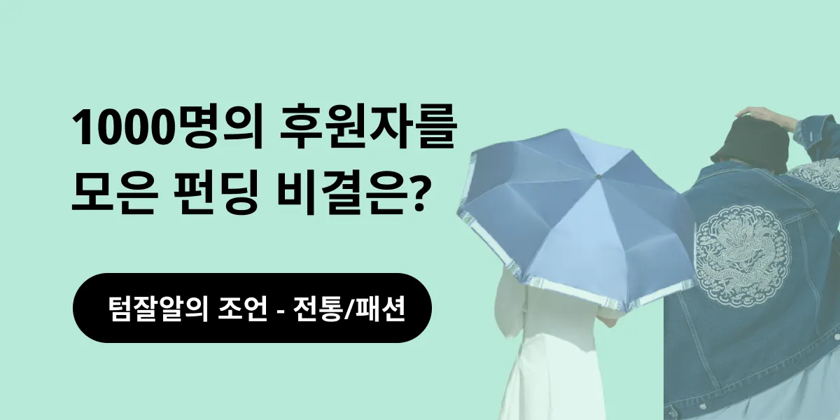 지난 9월에 열렸던 ‘송구힙신, 전통기획전’이 15억을 달성했다는 소식입니다! 무려 100개가 넘는 프로젝트가 모인 성대한 펀딩 잔치가 열렸는데요, 특히 패션 분야에서는 역대 최고액 펀딩이 갱신되며 새로운 역사를 썼다는 후문도 있습니다. 이로써 텀블벅 하면 전통, 전통 하면 텀블벅이라는 것이 입증된 것 같습니다.