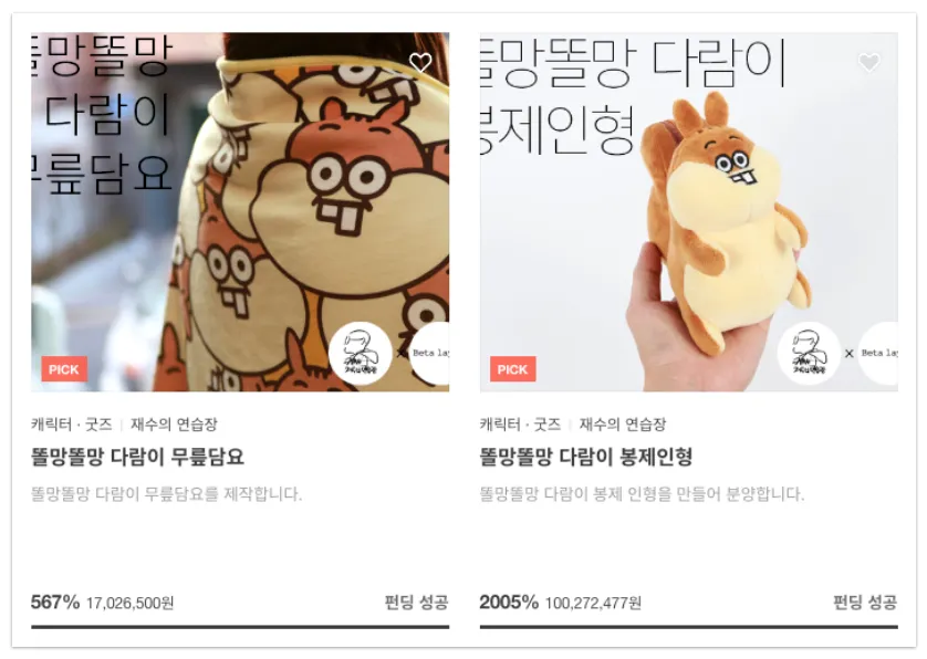 텀블벅에서 진행된 다람이 무릎담요와 봉제인형 펀딩