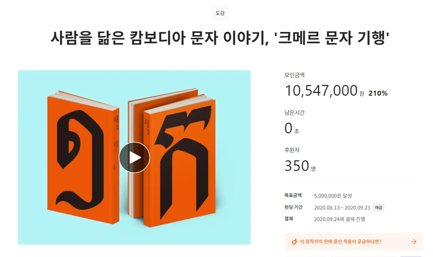 소장각 창작자님의 첫 펀딩 프로젝트인 ‘크메르 문자 기행’ https://tumblbug.com/khmercharactertravels