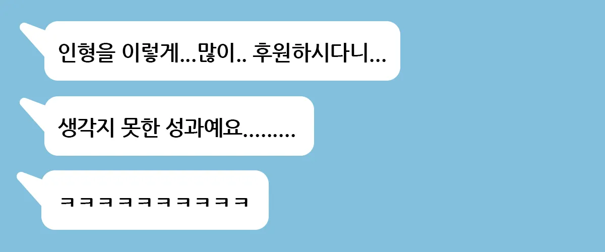 Tip. 텀블벅 후원자분들은 모아진 자금을 통해 창작자들이 프로젝트를 실현하는 펀딩 후원 시스템을 잘 이해하고 있습니다. 그렇기에 ‘빠른 배송’ 보다는 창작자와의 ‘신뢰 관계’ 그리고 ‘약속한 선물을 잘 전달’하는지를 중요하게 생각합니다. 앞선 사례에서도 언급했지만, 후원자와의 소통이 매우 중요해요. 만약 제작에 어려움이 있거나 배송 일정에 지연이 발생하다면 투명하게 내용을 알리는 것이 중요하다는 점 꼭 알려드리고 싶어요!