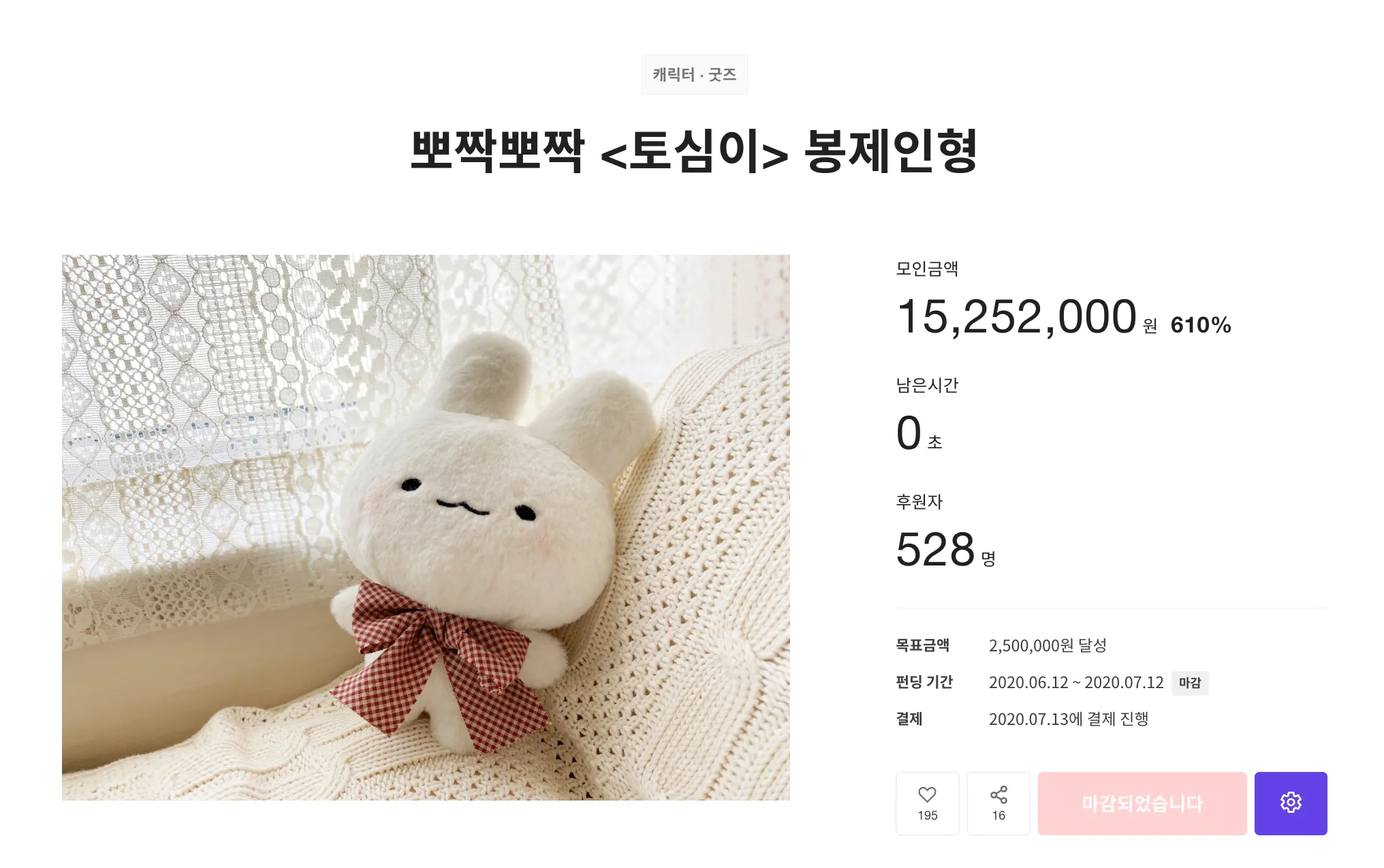 특히 토심이 프로젝트는 이전 성과 대비 8배 이상의 성과를 달성하였는데요, 예상보다 많은 후원자가 몰리더라도 펀딩 기간동안 제작에 대한 대비를 미리 시작할 수 있습니다!