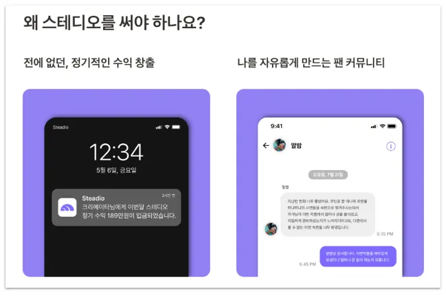 그리고 창작자들에게 스테디오 소식과 노하우를 전달하는 스테디오를 제가 직접 운영하고 있어요. 이름은 ‘레디 @스테디오팀’입니다. 방문하셔서 (+관심) 버튼을 클릭하시면 새로 올라오는 소식을 가장 빨리 전달받으실 수 있어요.