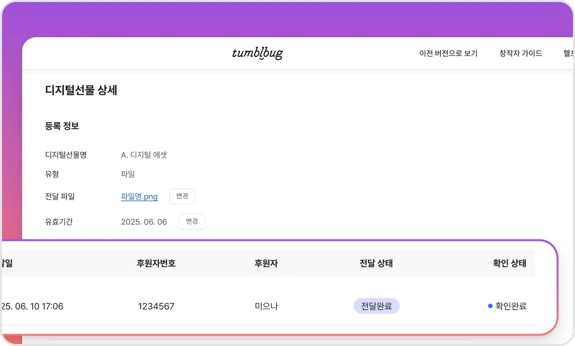 지속후원 서비스란, 텀블벅 프로젝트를 통해 제작된 창작물을 상시 판매할 수 있는 서비스입니다.