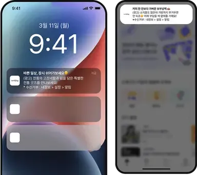 앱 푸시 / 앱 메인 팝업 / SNS 등