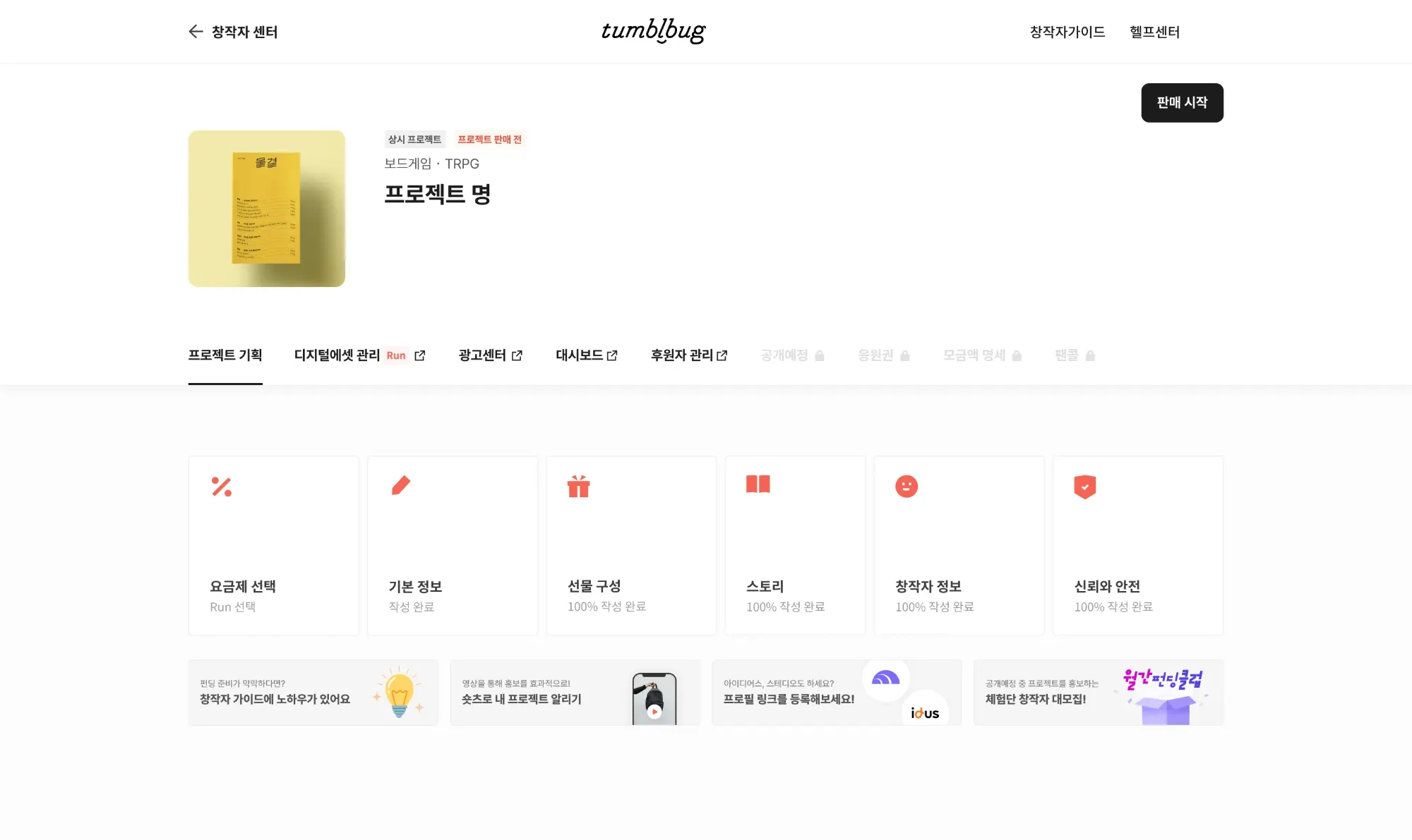 텀블벅에서 프로젝트가 끝난 뒤에도 창작자님의 작품과 선물을 계속 만나볼 수 있는 상시 판매 서비스가 시작됩니다. 복잡한 과정 없이 기존 프로젝트를 기반으로 상시 프로젝트를 시작해보세요.