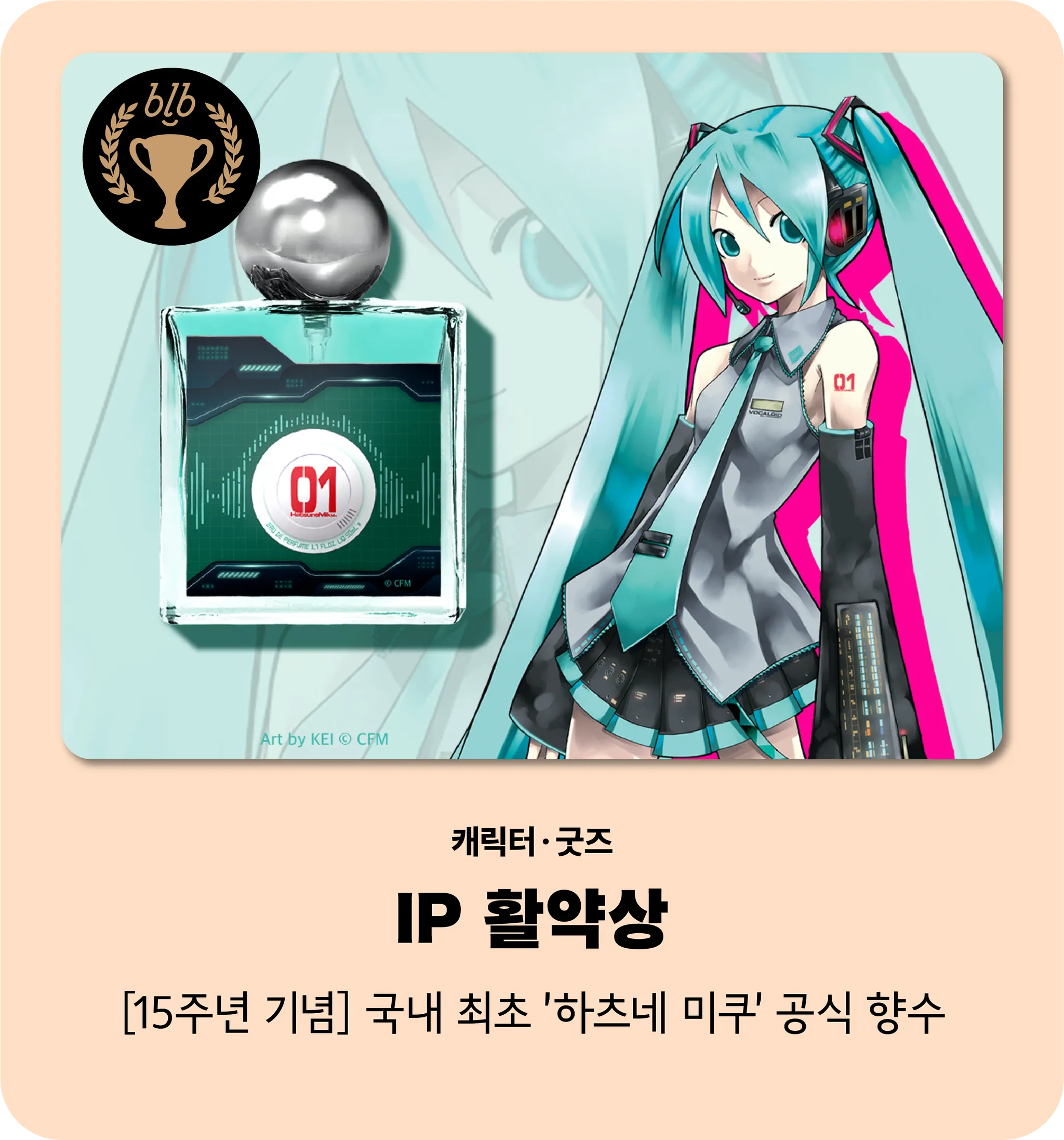 탄생 15주년을 맞이한 버추얼 싱어 ‘하츠네 미쿠’를 기억하는 팬들을 위해 센트라이브러리에서 향수를 선보였습니다. 캐릭터 본연의 뉘앙스를 섬세하게 연출한 디자인과 향수로 그 시절 팬들의 뜨거운 호응을 얻었습니다