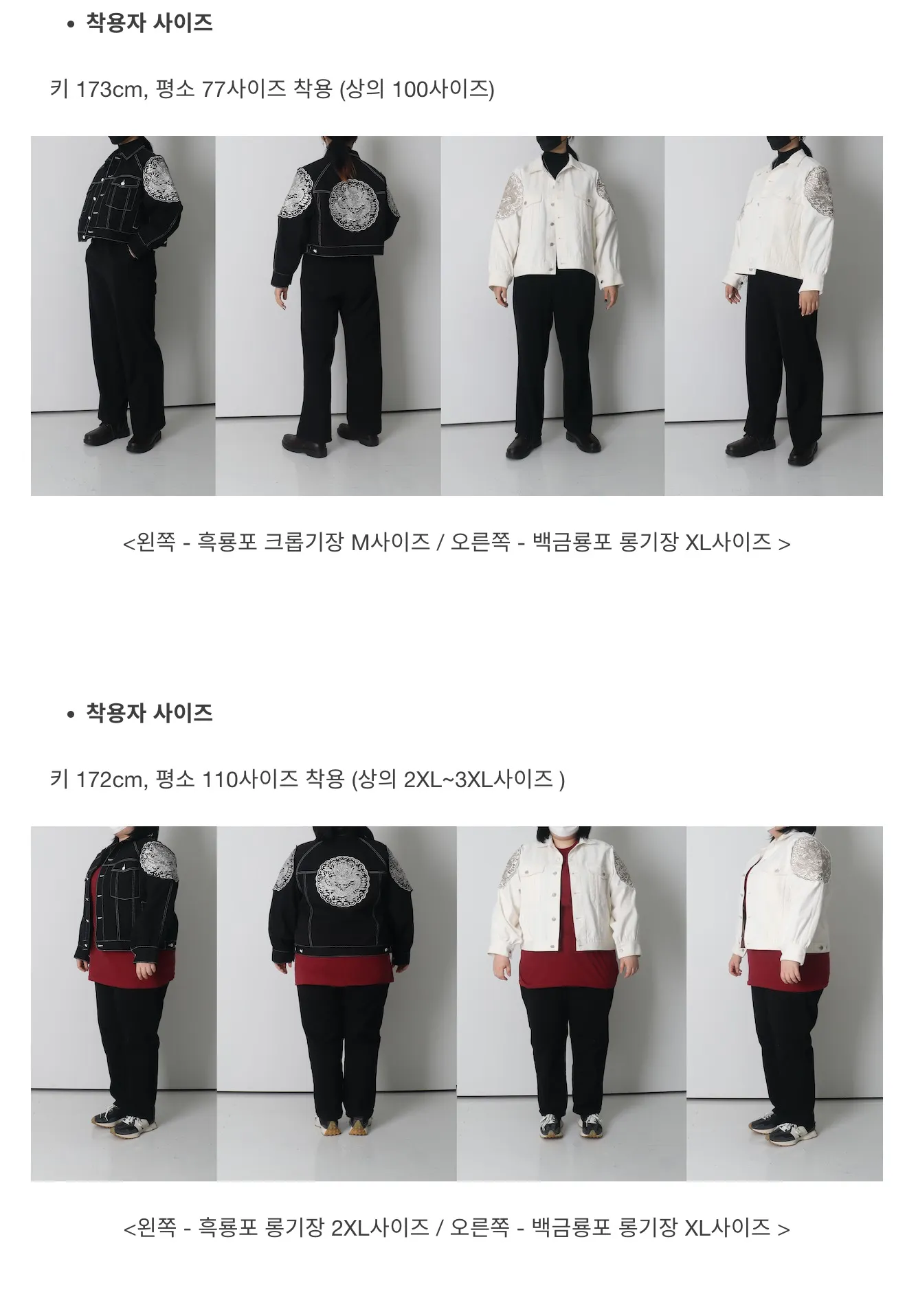 다양한 사이즈 제품을 다양한 체형의 모델 착샷을 상세페이지에 기재한 내용