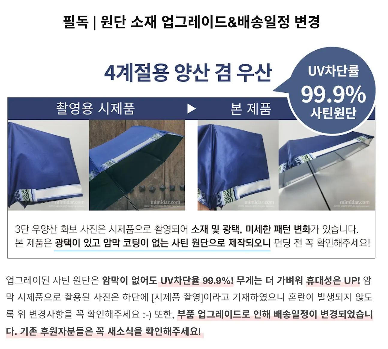 펀딩 진행중에 사소한 내용이라도 변경되는 내용들을 업데이트 하여 알리는 미미달 창작자의 상세페이지