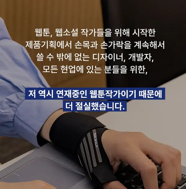 4개 제품군 중에 2가지는 보호대 제품입니다. 작가 지인들로부터 매번 신제품 출시가 너무 늦다는 원성을 많이 듣고 있는데 잘 만든 최대한 좋은 제품으로 다시금 찾아뵐 수 있도록 노력하겠습니다. 감사합니다.