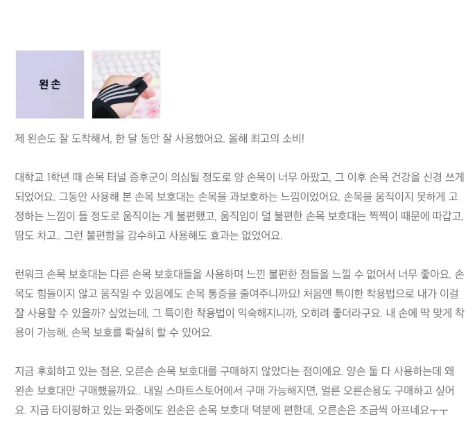 디앤엘 시장의 기존 제품들에서 불편한 부분을 개선해낸 것과 독특한 디자인의 차별화가 아닐까 싶어요. 제품이 일반 손목 보호대와는 구조부터 디자인까지 다르니 감사하게도 많은 분들이 관심을 가져주신 것 같습니다.