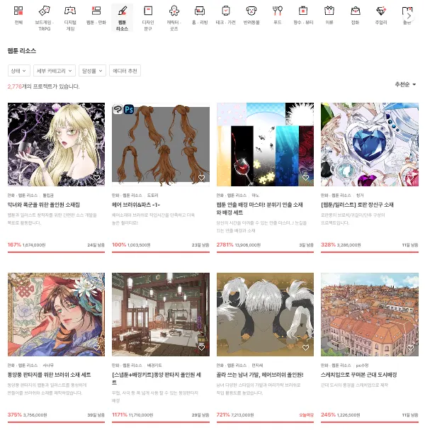 텀블벅에는 작가들을 위한 웹툰 리소스 펀딩이 활발히 진행되고 있다.