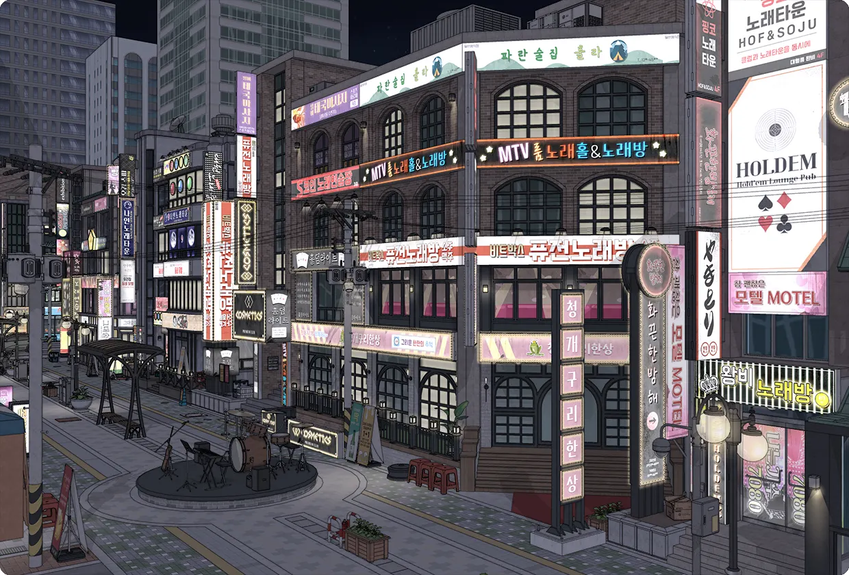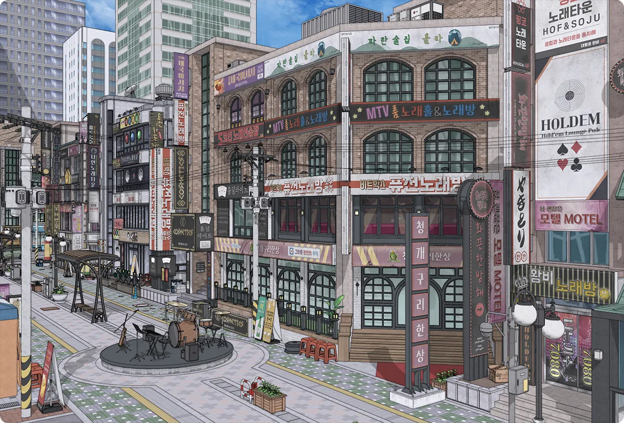 일비 배경을 사용하는 작가님들의 입장에 서서 시작하는 게 중요한 것 같아요. 그 배경으로 작가님들이 어떤 스토리를 쓸 수 있을지, 어떤 연출과 소품이 필요할지, 어떠한 색감이 캐릭터와 어울릴지 등 기획과 제작 중에 계속 작가님들의 시각으로 판단하는 노력이 필요한 것 같아요.